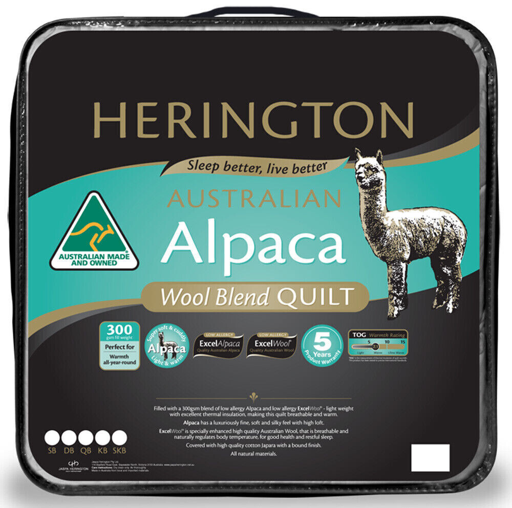 Filled with a 300gsm blend of 50% low allergy Australian Alpaca and 50% low allergy Australian ExcelWool® – light weight with excellent thermal insulation, making quilt breathable and warm.